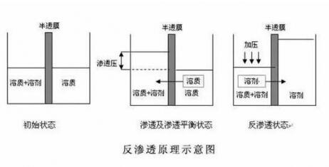 简单来说,一般水是由低浓度向高浓度渗透,而在加压之后,将从高浓度渗透至低浓度。利用渗透压力差为动力的膜分离过滤技术,就是反渗透的原理。