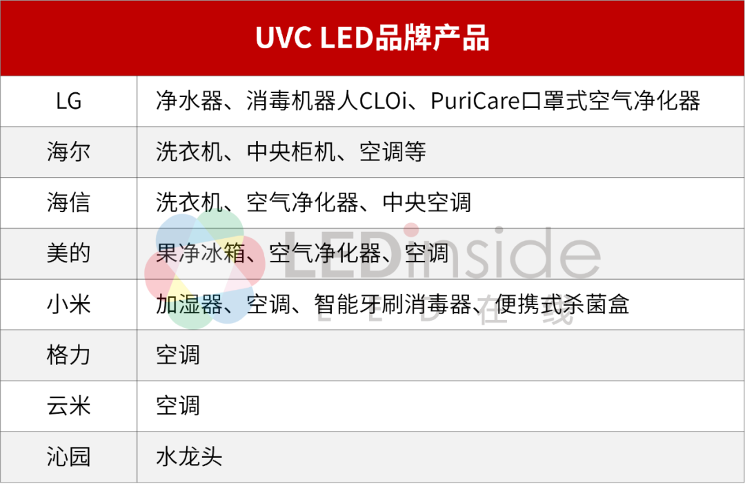 实际上,不仅仅是产业链各环节厂商的投资力度,uvc led终端品牌产品的数量也呈现出增长之势,尤其是家电产品。