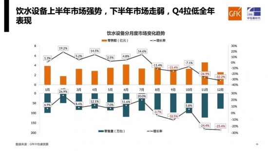 分月度看2021年市场变化趋势可见,家用饮水设备上半年市场表现强势,量额全面增长。下半年开始市场走弱,尤其是第四季度市场表现不如预期。