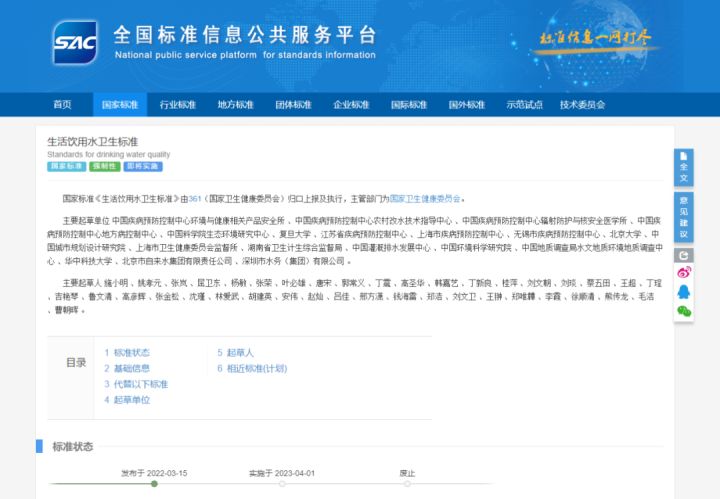 新发布的《生活饮用水卫生标准》标准号定为gb5749-2022,2023年4月1日起正式实行,将全部代替现行的gb5749-2006。