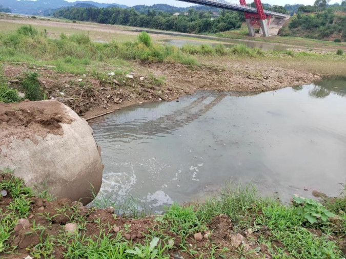 图2 2023年5月,九支镇新建管网污水溢流直排赤水河,在河边形成污染带。