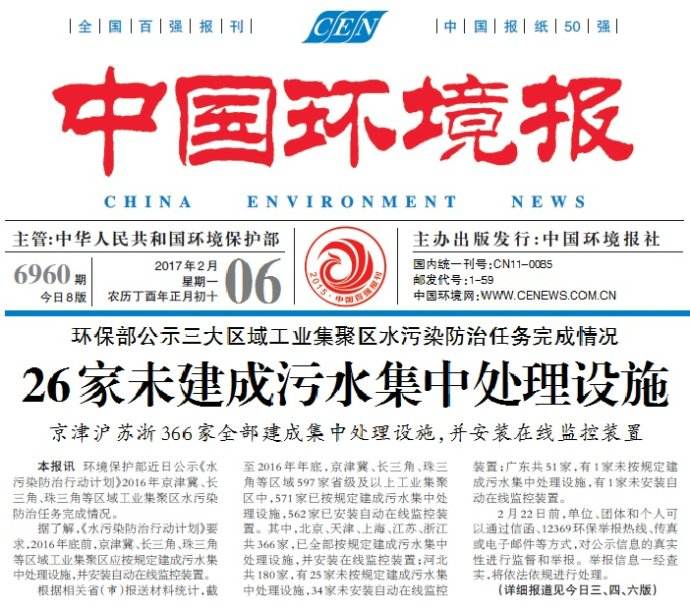 3、通报我国工业集聚区水污染防治工作阶段性进展