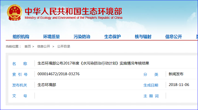 1、公布2017年度《水污染防治行动计划》实施情况考核结果