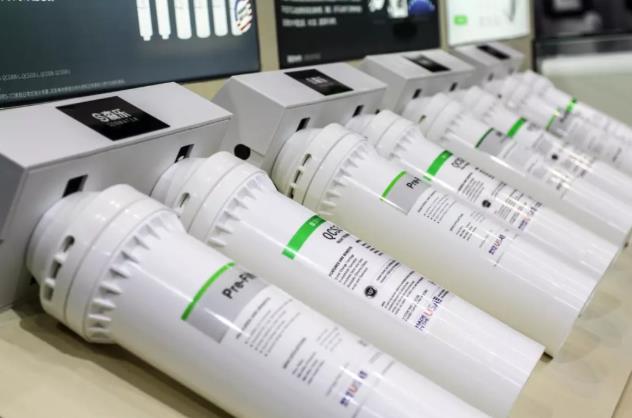 另外这次还展示了森乐改进升级的原装直饮机,全系通过了nsf四大认证,这是森乐现在的拳头产品之一,流量大寿命长并且不产生废水,可以提供整个家庭的餐饮用水。滤芯采用aquabond超微聚合炭粉,同时把不同级别的纳米级材料与尺寸较大的基材有机结合在一起,高效去除余氯、氯胺、重金属、voc类、氨氮等污染物。